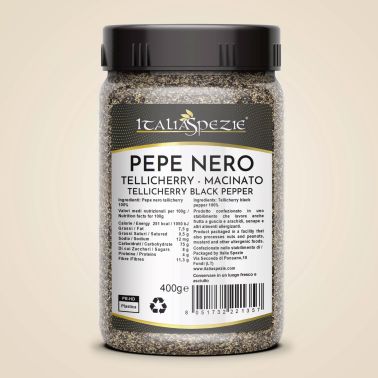 Immagina di preparare uno dei piatti più iconici della cucina italiana: la cacio e pepe! In questo piatto, il pepe nero è il vero protagonista, esaltando i sapori con il suo carattere pungente e aromatico. Ma a fare la differenza è il nostro pepe nero macinato Tellicherry, una varietà pregiata originaria delle coste dell'India, che aggiunge una nota unica e raffinata alla tua ricetta. Che aspetti a provarlo? È disponibile in un pratico vasetto in PET, facile da usare e riutilizzabile, oppure nell’apposito sacchetto da 1 kg per una convenienza extra. Acquista ora!