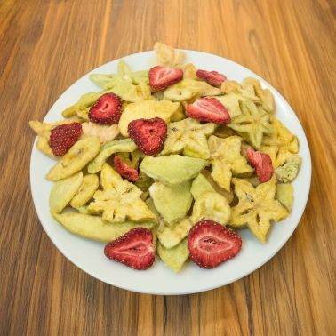 • Mix di frutta chips: una deliziosa combinazione banana, ananas, melone verde, carambola, mela, fragola.